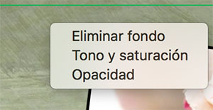 - Tono y saturación, abre una ventana para ajustar el tono y saturación del fondo