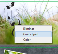 - Eliminar: Permite eliminar el clipart de la hoja y girarlo el nº de grados indicado. Recuerda que puedes aumentar o disminuir el tamaño de un clipart arrastrandolo con el ratón mientras pulsas Mayus (Shift) y mover el clipart arrastrandolo con el ratón.