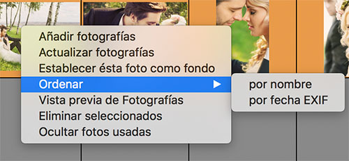 - Ordenar por nombre: ordena las fotos en la lista por nombre de archivo