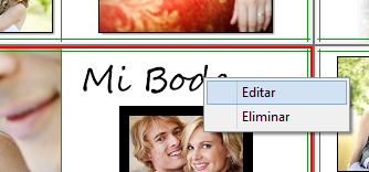 - Traer al frente la fotografía. Esta opción sólo es necesario utilizarla en los diseños en los que se solapen las fotografías y una queda oculta por la foto superior, mediante esta opción la foto seleccionada se convierte en la capa superior y será totalmente visible; para modificar el orden de visualización de varias fotos solapadas simplemente traelas al frente en el orden en que se deben ver siendo la superior la última.